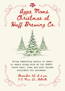 Aggie Moms Tailgates at Aggie Park – every home football game, all are welcome!